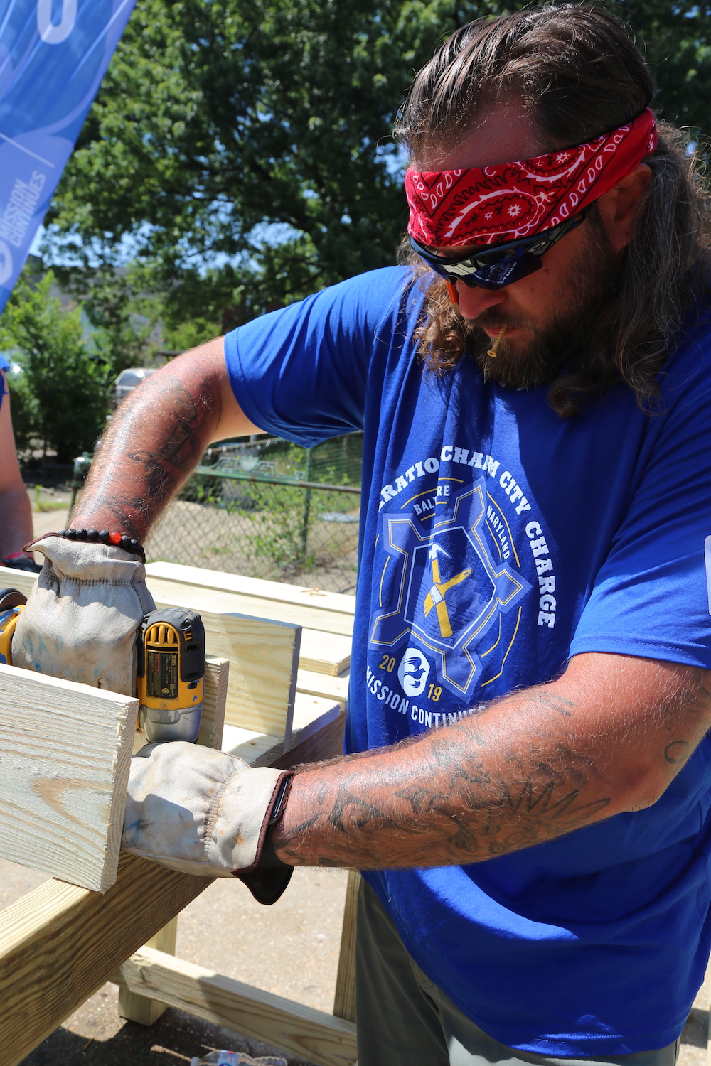 Lockheed Martin was our daily sponsor, and employees showed up to help with the volunteer effort. Big shoutout to them for enduring a full day out in the hot sun alongside our veterans!