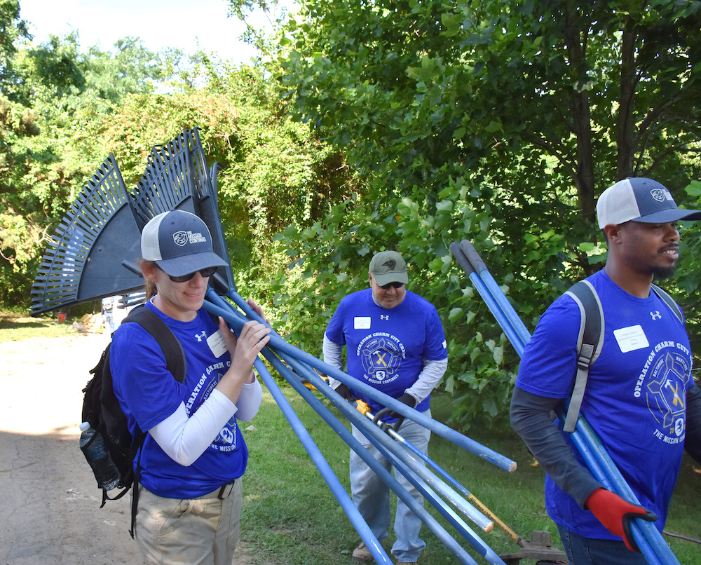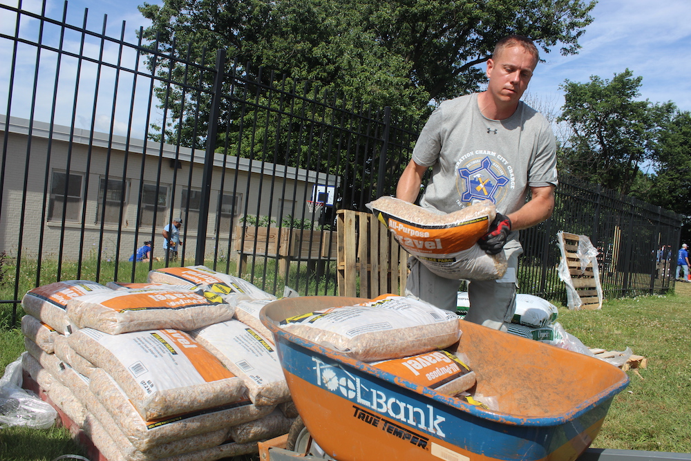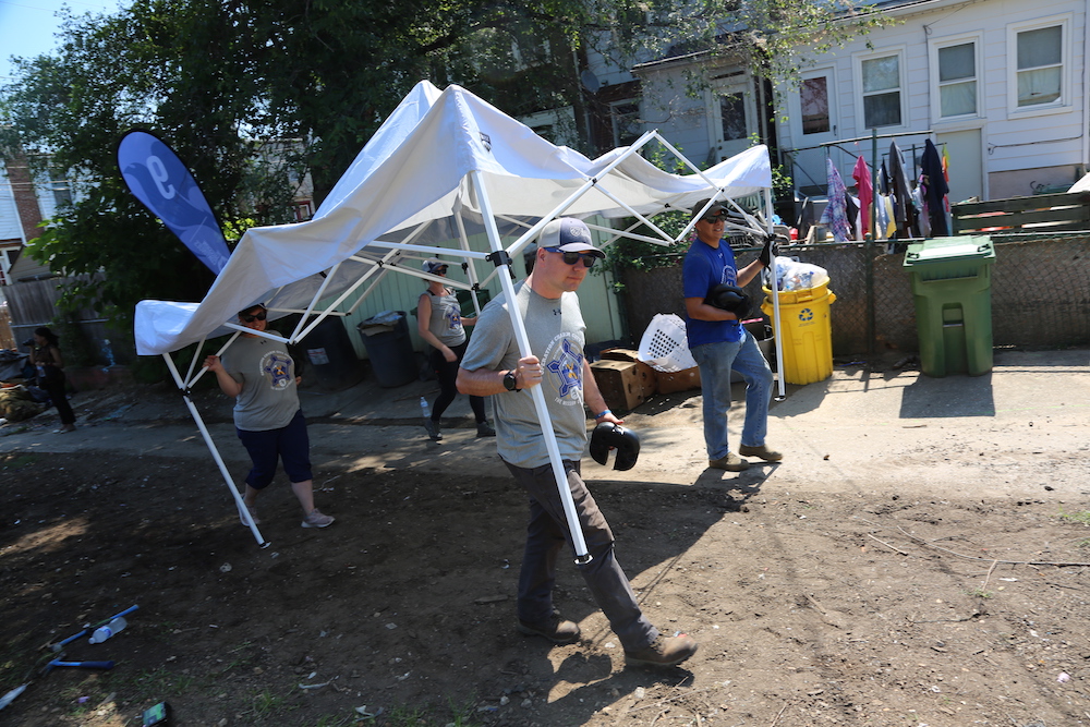 Spencer Kympton, president of The Mission Continues, greeted the veterans on their first day of Mass Deployment. “We all share a few beliefs: the belief that what you’re gonna do today, this week, and back in your community, is going to make a real difference. The belief that his neighborhood can achieve what it wants to achieve–and the belief that we can come together, be a united front, that when we pick up this tool we’re showing that we’re all in this together.”